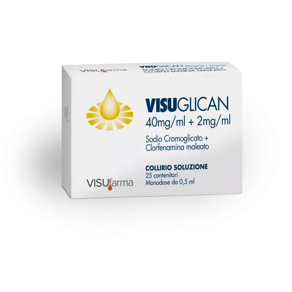 VISUGLICAN appartiene ad un gruppo di farmaci chiamati decongestionanti ed antiallergici e contiene due principi attivi: Sodio cromoglicato e Clorfenamina maleato.