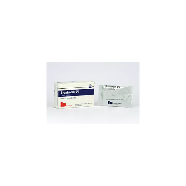Brunicrom contiene il principio attivo sodio cromoglicato che appartiene ad un gruppo di medicinali chiamati antiallergici che attenuano i sintomi delle allergie.