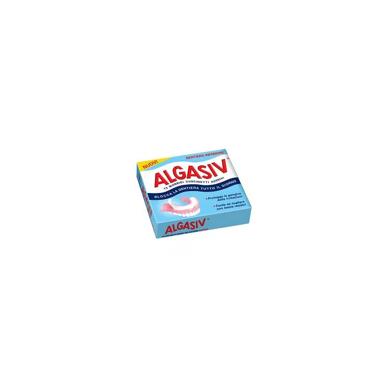 Cuscinetto morbido con due potenti adesivi naturali che blocca la dentiera tutto il giorno, protegge le gengive da fastidiose irritazioni e combatte i cattivi odori della bocca. Algasiv per dentiera inferiore è un morbido cuscinetto, con due potenti adesivi naturali, che blocca la dentiera tutto il giorno, protegge le gengive da fastidiose irritazioni e combatte i cattivi odori della bocca.