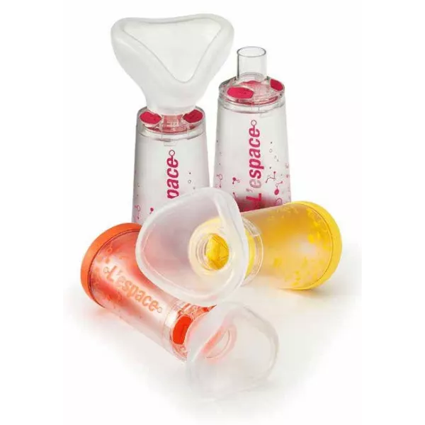 L’espace aiuta a limitare gli effetti collaterali della deposizione orofaringea del farmaco e facilita il coordinamento tra l’atto inspiratorio e l’erogazione con lo spray predosato.