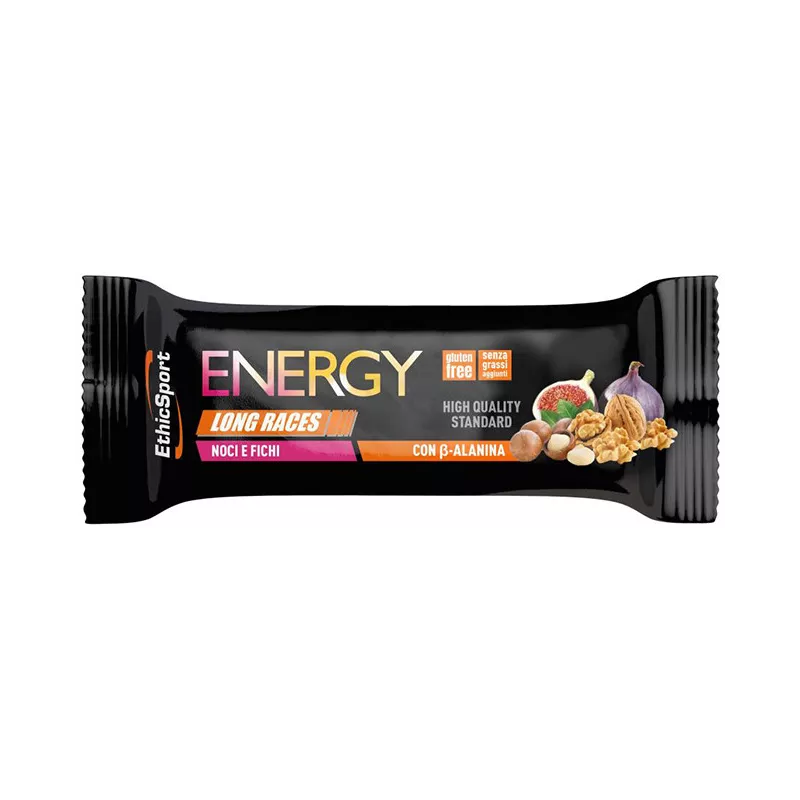 Descrizione Barretta energetica per sportivi consigliata per fornire energia in forma solida, prima e durante l'allenamento con beta-alanina e carboidrati a lento rilascio.