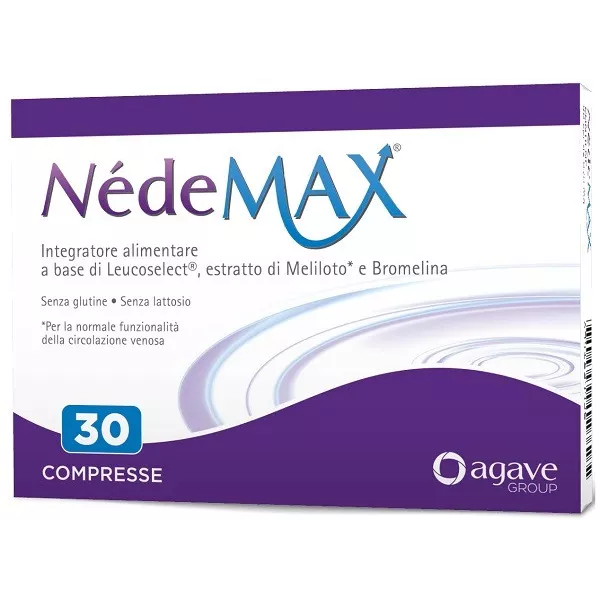 Descrizione Integratore alimentare a base di Leucoselect (leucocianidine), meliloto e bromelina. NédeMAX è indicato in tutti i casi di insufficiente apporto nella dieta o aumentato fabbisogno di tali nutrienti. La Vitis vinifera (da cui sono estratte le leucocianidine) e il meliloto contribuiscono a mantenere la normale funzionalità del microcircolo. La Vitis vinifera contribuisce alla riduzione del senso di pesantezza delle gambe. Il meliloto favorisce la normale funzionalità della circolazione venosa e il drenaggio dei liquidi corporei.