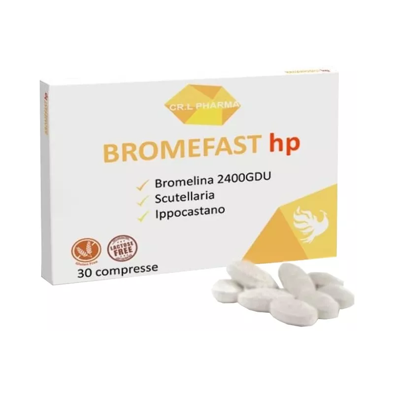 Bromelina 2400 GDU; agente di carica: ellulosa microcristallina; scutellaria (Scutellaria baicalensis Georgi, radice) estratto secco titolato 95% baicalina; ippocastano (Aesculus hippocastanum L. corteccia) estratto secco titolato 15% escina; agenti antiagglomeranti: magnesio stearato vegetale, biossido di silicio.