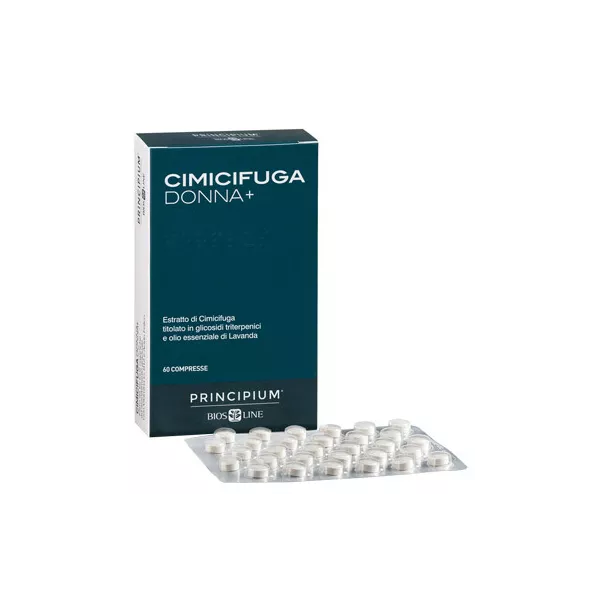 Descrizione Integratore alimentare per contrastare i disturbi della menopausa e favorire il rilassamento. Contiene un alto dosaggio di estratto di cimicifuga titolato al 2,5% in glicosidi triterpenici. Principium Cimicifuga Donna+ contiene inoltre olio essenziale di lavanda, utile nel favorire il normale tono dell'umore, il rilassamento e il sonno. Senza fitoestrogenti. Adatto ai vegani.