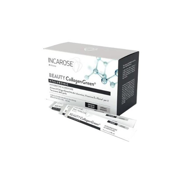 È un integratore alimentare, pronto da bere, a base di CollagenGreen, una miscela specifica dei 3 aminoacidi di cui si compone il collagene, la più importante proteina strutturale del nostro corpo. Una formula che promuove la bellezza della pelle, rendendola più liscia, compatta e luminosa.