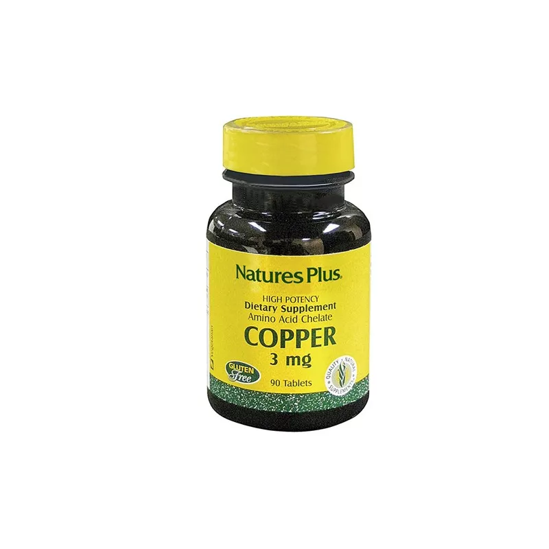 3 mg Complemento alimentare a base di rame, minerale in traccia che permette al ferro di poter essere assorbito, trasportato nel sangue o utilizzato.
