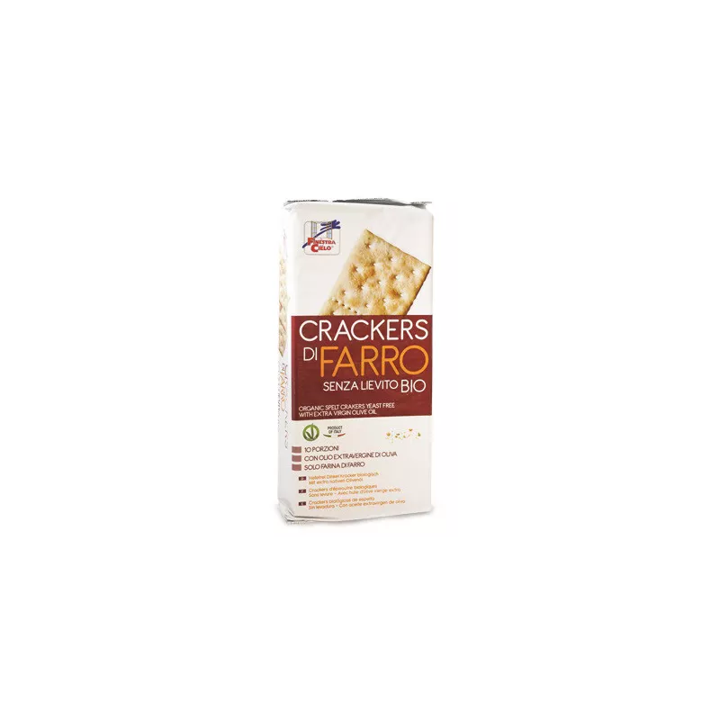 Descrizione Crackers di farro prodotti senza alcun tipo di lievito, confezionati in pratici pacchetti monoporzione. Ideale come snack sfizioso o come alternativa al pane. Prodotto adatto ai vegani.