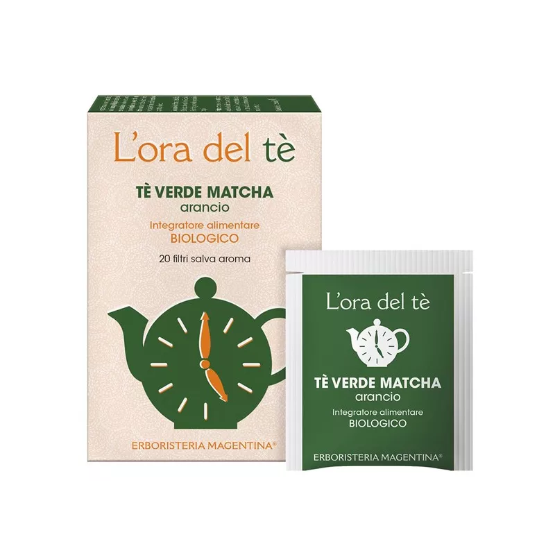 Ingredienti Tè verde (Camellia sinensis L. Kuntze) foglie*, Arancio dolce (Citrus sinensis L. Osbeck) frutto*, Yerba mate (Ilex paraguariensis A. St.-Hil.) foglie*, Liquirizia (Glycyrrhiza glabra L.) radice*, Menta dolce (Mentha spicata L.) foglie*, Cardamomo [Elettaria cardamomum (L.) Maton.] semi*, Tè verde matcha (camellia sinensis L. Kuntze) foglie*.