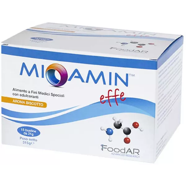 Si consiglia di assumere una bustina al giorno, salvo diversa indicazione del medico. Versare una bustina di MIOAMIN effe in un bicchiere o in uno shaker. Aggiungere circa 200 ml di acqua o di una qualsiasi bevanda (latte, thè) fredda o a temperatura ambiente. Mescolare e bere in un breve lasso di tempo. In alimentazione artificiale, MIOAMIN effe può essere somministrato anche tramite sonda e/o PEG.