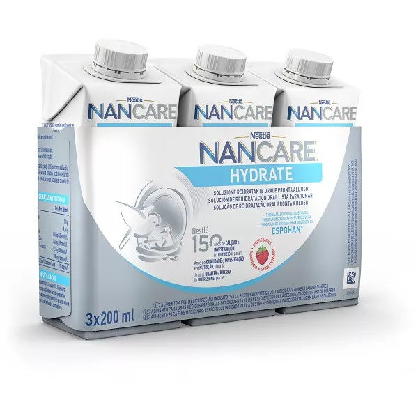 NANCARE HYDRATE è formulata specificatamente per ripristinare l'equilibrio idrosalino, grazie al contenuto di elettroliti e carboidrati, in accordo con le linee guida ESPGHAN.