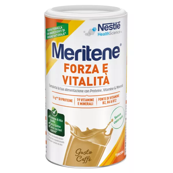 Ingredienti Latte scremato in polvere, caffè solubile 6,5%, trigliceridi a catena media, minerali (fosfato di ferro, gluconato di zinco, selenito di sodio, carbonato di magnesio), vitamine (A, D, E, K, C, tiammina, riboflavina, niacina, B6, acido folico, acido pantotenico, B12), edulcorante (glicosidi steviolici).