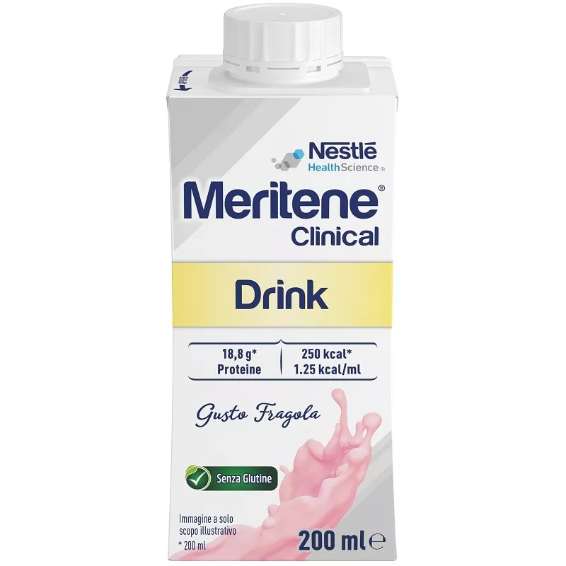 Descrizione Alimento a fini medici speciali. Nutrizionalmente completo. Iperproteico. MERITENE Clinical Drink è un alimento a fini medici speciali, caratterizzato da un elevato contenuto proteico e di carboidrati. Per questo motivo è indicato per la gestione dietetica della malnutrizione calorico-proteica, anche di pazienti sarcopenici.