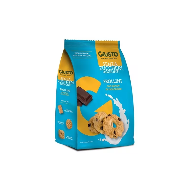 frumento; edulcorante: maltitolo; margarina vegetale (grassi di palma non idrogenati, acqua; correttore di acidità: acido citrico), gocce di cioccolato 8,4% (edulcorante: smaltitolo; pasta di cacao, cacao magro in polvere; emulsionante: lecitina di