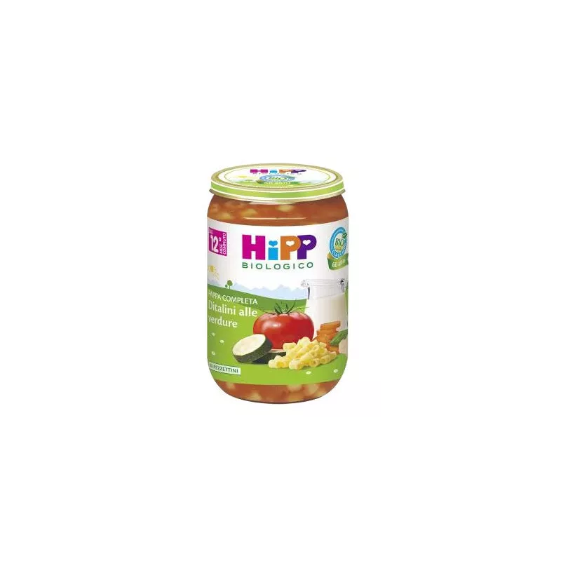 HiPP Ditalini alle verdure La pappa che costituisce un pasto completo e bilanciato grazie alla combinazione di ingredienti biologici accuratamente selezionati.