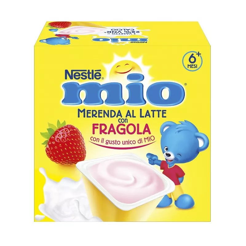 Merenda a base di latte con purea di frutta, è preparata con oltre il 75% di latte e contiene naturalmente calcio, che contribuisce allo sviluppo normale delle ossa.