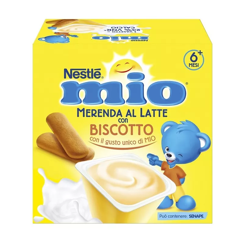 Descrizione Alimento per l'infanzia. Merenda a base di latte con biscotto.