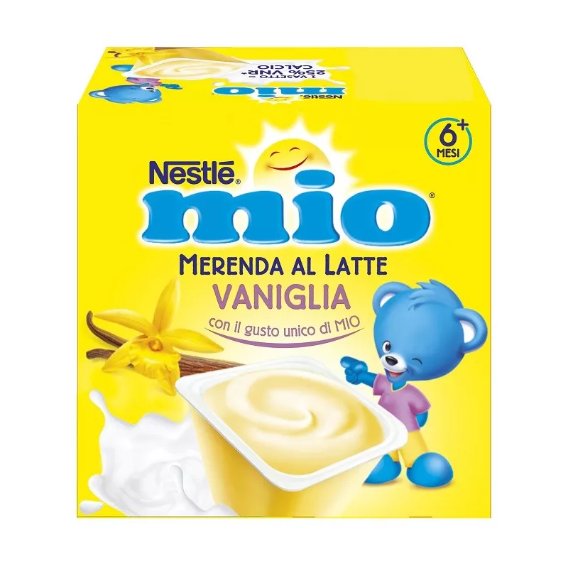 Merenda a base di latte con vaniglia, è preparata con oltre il 90% di latte e contiene naturalmente calcio, che contribuisce allo sviluppo normale delle ossa.