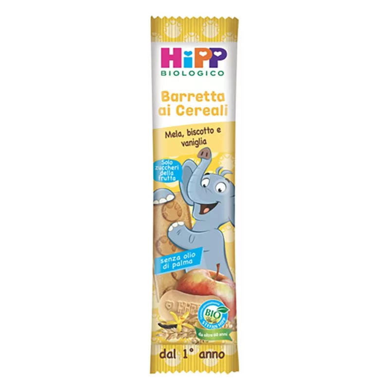 Le barrette ai cereali Hipp offrono il meglio della frutta e dei cereali grazie alla gustosa combinazione di croccanti cereali biologici, biscotto, mela ed estratto di vaniglia.
