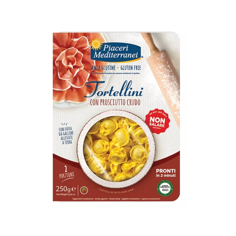 Ingredienti Farina di riso, amido di mais, uova da galline allevate a terra 17%, brasato di manzo [carne di manzo fresca, riso, farina di riso, cipolla, carota, sedano, proteina vegetale (pisello), vino (contiene solfiti), sale, aceto, aglio], albume (uova), prosciutto crudo 4,5% (carne di suino, sale), Grana Padano (latte, sale, caglio, lisozima da uovo), sale, aromi, olio extra vergine di oliva, fibra vegetale (bamboo, psyllium, pisello), destrosio, olio di girasole; addensante: gomma di xanthan; estratto naturale d'oliva, noce moscata; conservante: sorbato di potassio.