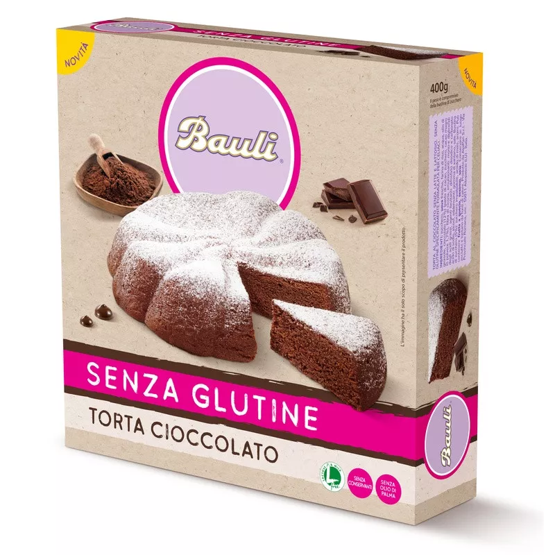 DescrizioneTorta al cioccolato senza glutine specificamente formulata per celiaci.