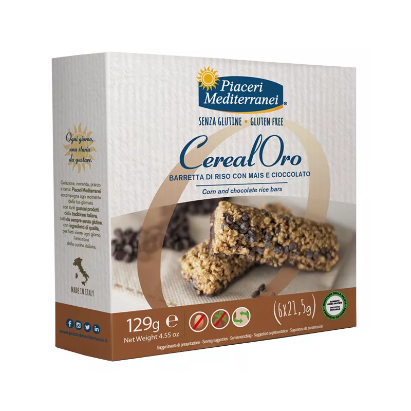 Descrizione Barrette di riso con mais e cioccolato, ideali per uno spuntino leggero.