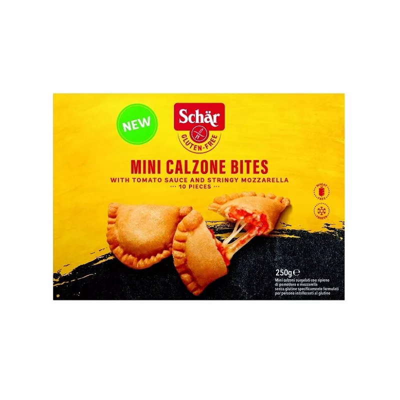 Descrizione Mini calzoni surgelati con ripieno di pomodoro e mozzarella. Specificamente formulati per persone intolleranti al glutine.