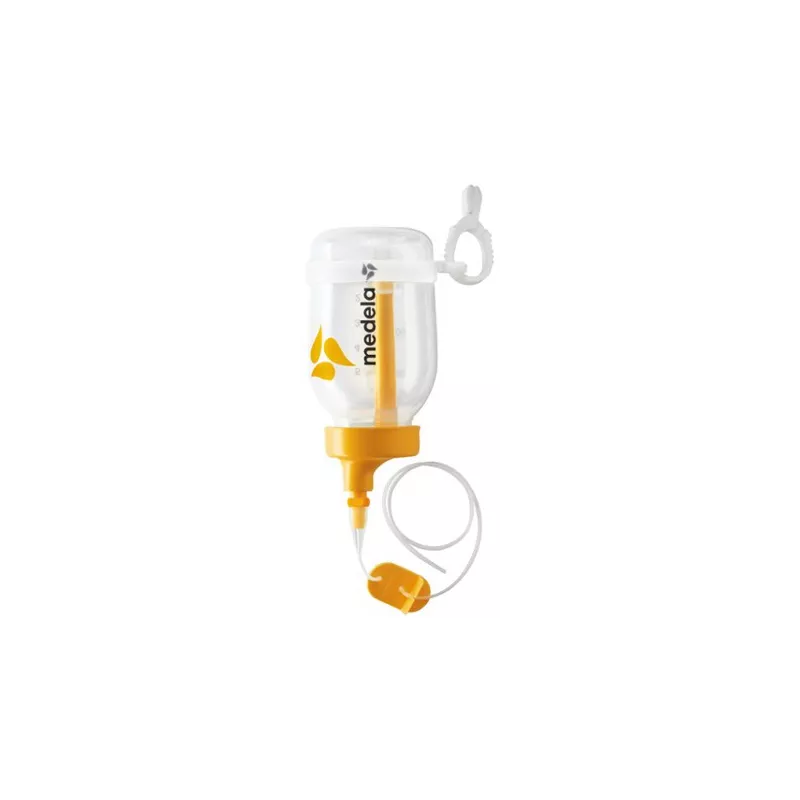 Il sistema di allattamento supplementare (SNS) è un ausilio per la lattazione costituito da un contenitore riempito con integrazione di latte, che viene fissato saldamente alla spallina del reggiseno, una maglietta o un cuscino. Mentre il neonato è attaccato al seno/al petto, un tubicino sottile e flessibile viene posizionato lungo il capezzolo nella bocca del bambino, in modo che durante la poppata il latte fluisca in modo controllato e costante.