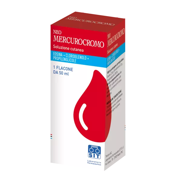 NEOMERCUROCROMO è un prodotto a base di eosina, cloroxilenolo e propilenglicole usato nel trattamento locale disinfettante di ferite superficiali, abrasioni, scottature superficiali e non estese (ustioni di primo grado), piaghe da decubito di lieve entità (cioè che interessano solo lo strato più superficiale della pelle).