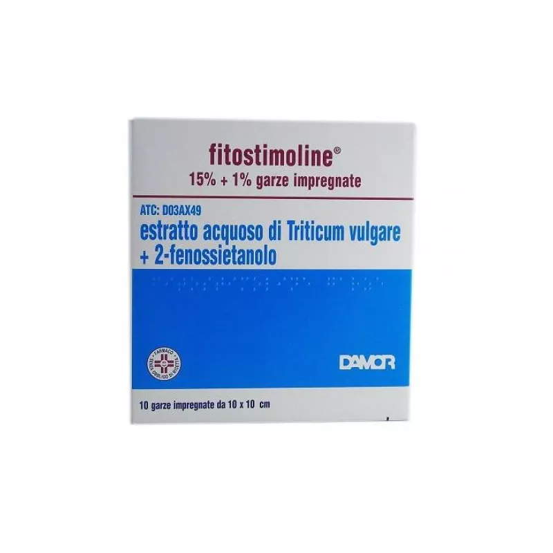 FITOSTIMOLINE 15% garze impregnate contiene un estratto acquoso di Triticum vulgare ed ha azione cicatrizzante.