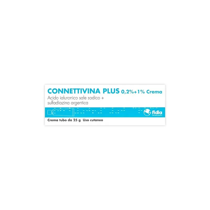 Connettivina Plus 2 mg/g + 10 mg/g crema contiene due principi attivi: acido ialuronico sale sodico e sulfadiazina argentica, ed appartiene ad una classe di medicinali definiti cicatrizzanti e disinfettanti.