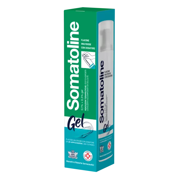 SOMATOLINE 0,1% + 0,3% GEL è indicato per il trattamento di stati di adiposità localizzata accompagnati da cellulite negli adulti.