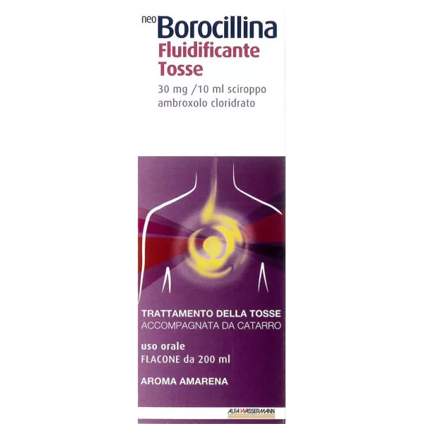 Neo Borocillina Fluidificante Tosse contiene il principio attivo ambroxolo cloridrato; questo medicinale appartiene alla classe dei mucolitici e agisce come fluidificante delle secrezioni (catarro) delle vie respiratorie.