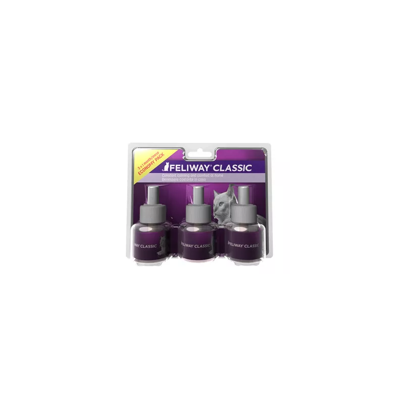 Aiuta i gatti a tenere il ritmo della vita moderna, consentendo un pieno appagamento ed evitando marcature urinarie, graffiature o tendenza a nascondersi. Feliway Classic è una copia del feromone facciale felino che i gatti depositano strofinando il loro muso sulle persone, mobili, porte e altri oggetti nella casa. È il segno che si sentono a loro agio e sicuri nell'ambiente in cui vivono. Feliway Classic utilizzato nell'ambiente in cui vive il gatto fornisce la stessa sensazione di sicurezza dei feromoni depositati dai gatti in natura.