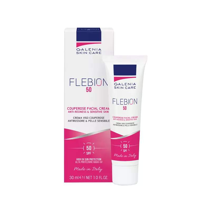 Crema viso indicata nel periodo estivo per la correzione di: couperose, rosacea, flushing, teleangectasie. Flebion 50 protegge dai raggi solari, prevenendo macchie e foto invecchiamento. La ricca e morbida texture nutre in profondità la pelle senza ungere, rendendola elastica e compatta e proteggendola dagli agenti esterni.
