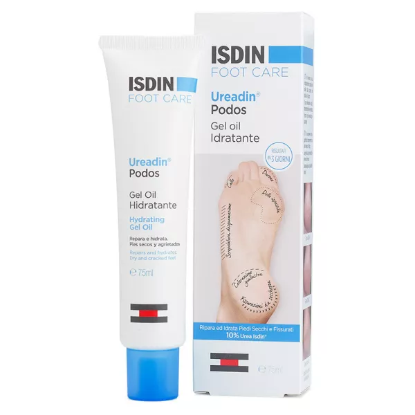 Gel oil idratante per piedi secchi e screpolati. Ripara le fissurazioni da secchezza grazie all'allantoina, al pantenolo e al burro di Karitè. Elimina ruvidità, fissurazioni ed inspessimenti moderati grazie all'azione esfoliante dell'acido lattico e del bacillus fermento. Idrata in profondità grazie all'Urea ISDIN, che trattiene l'acqua apportando un livello ottimale di idratazione. Texture Gel Oil leggera e non grassa a rapido assorbimento.
