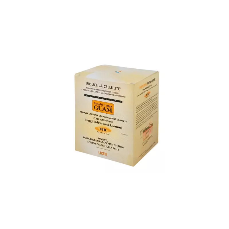 Fanghi d'alga Guam, in una formula originale con alga marina Guam (21%) che, con i benefici dei raggi infrarossi lontano (FIR), riduce la cellulite contribuendo ad un aumento della microcircolazione. Con tormalina nera, un minerale naturale puro, micronizzato a 53 micron. Con questa nuova formulazione il trattamento ai Fanghi d'Alga Guam aumenta la temperatura cutanea e assorbe il calore del corpo che viene riemesso sotto forma di raggi infrarossi lontani, a tutto vantaggio di cellule e tessuti con l'aumento della microcircolazione cutanea che permette un migliore assorbimento dei principi attivi delle alghe marine Guam.