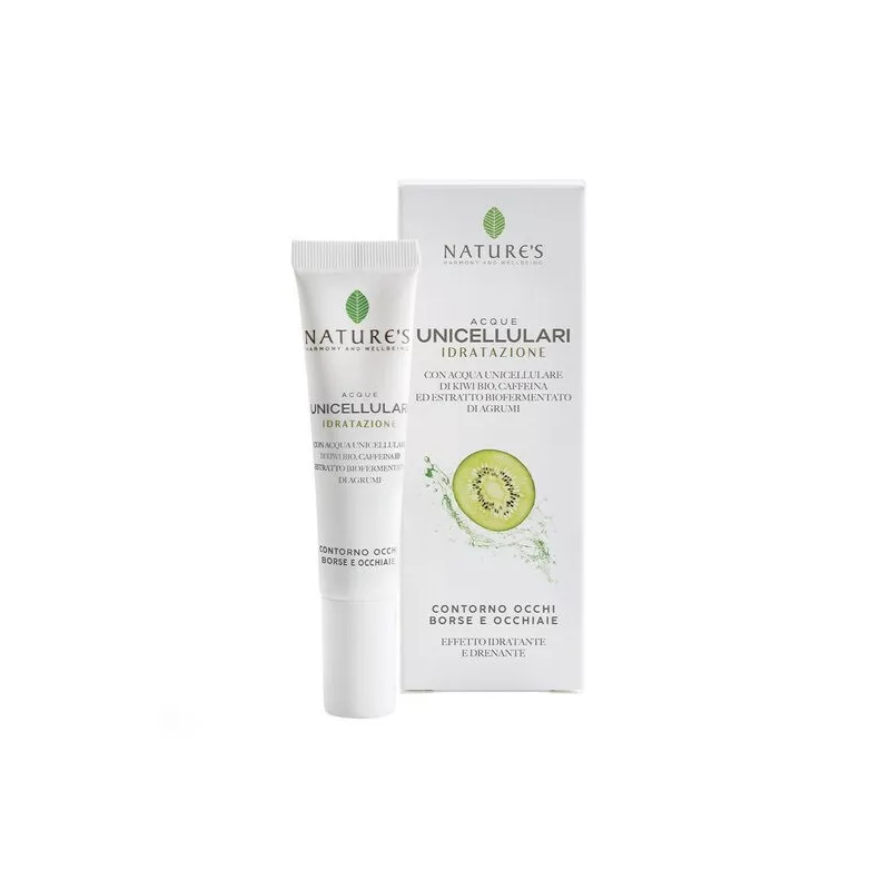 - acqua unicellulare di kiwi bio e acido ialuronico, distendono le piccole rughe e restituiscono allo sguardo un aspetto più fresco