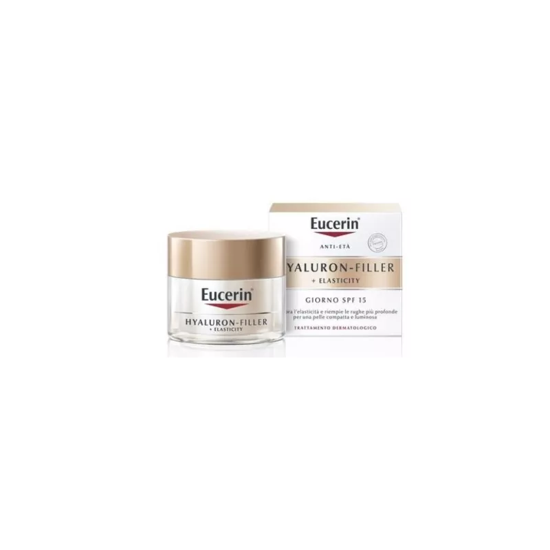 Eucerin HYALURON-FILLER + ELASTICITY Crema Giorno contiene SPF 15 e filtri UVA per una maggiore protezione dai raggi solari che possono rendere più profonde le rughe ed accelerare il processo di invecchiamento cutaneo.