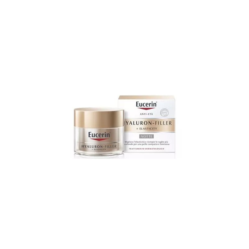 Eucerin raccomanda di usare HYALURON-FILLER + ELASTICITY Notte come parte della routine quotidiana insieme a Eucerin HYALURON-FILLER + ELASTICITY Crema Giorno e a Eucerin ELASTICITY + FILLER Olio Viso Rinnovatore Satinante.