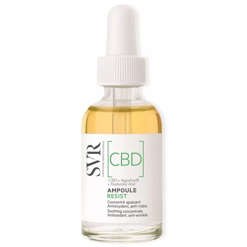 Aqua (water), undecane, tridecane, hydrogenated ethylhexyl olivate, propanediol, glycerin, octyldodecanol, Prunus cerasus (bitter cherry) seed oil, Simmondsia chinensis (jojoba) seed oil, Punica granatum seed oil, sodium chloride, acetyl hexapeptide-8, cannabidiol - derived from extract or tincture or resin of cannabis, Glycine soja (soybean) oil, hydrogenated olive oil unsaponifiables, sodium hyaluronate, tocopherol, 1,2-hexanediol, caprylyl glycol, citric acid, pentylene glycol, parfum (fragrance).