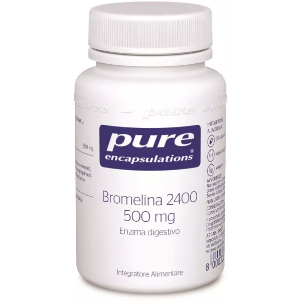 Ingredienti Bromelina 2.400 GDU/g (da Ananas comosus), capsula di origine vegetale (idrossipropilmetilcellulosa), antiossidante (esteri dell'acido ascorbico con acidi grassi).