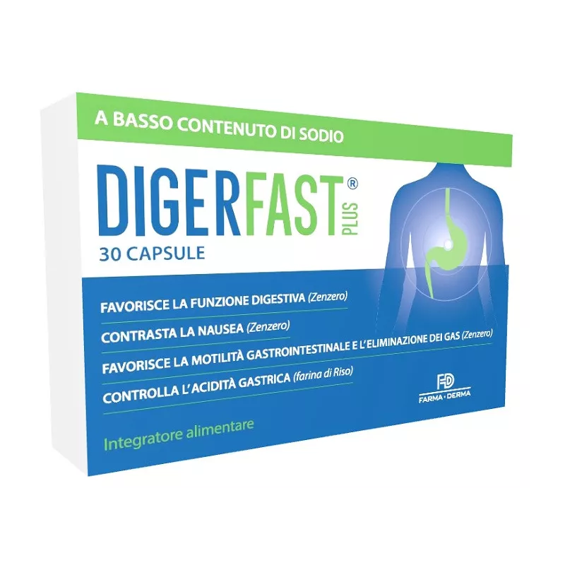 Descrizione Digerfast plus è un integratore alimentare a base di zenzero, farina di riso, magnesio e vitamine del gruppo B (B1, B2 e B6). Lo zenzero ha funzione digestiva e antinausea, aiuta a favorire la motilità gastrointestinale e l'eliminazione dei gas, oltre a contrastare gli stati di tensione localizzati e i disturbi del ciclo mestruale. La farina di riso favorisce il controllo dell'acidità gastrica e svolge un'azione emolliente e lenitiva a livello del sistema digerente. Il magnesio contribuisce al mantenimento dell'equilibrio elettrolitico.