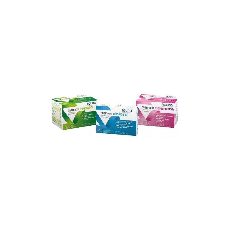 Divertikur regola: integratore alimentare a base di fibra d'acacia, prugna, kiwi ed estratto di boldo. Prugna e boldo favoriscono la regolarità del transito intestinale. Il kiwi ha un'azione di sostegno e ricostituente.