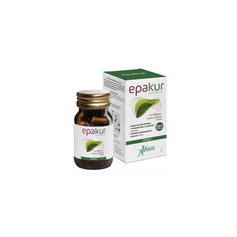 Descrizione Integratore alimentare con Neocuphenyl, innovativo complesso molecolare composto da acidi idrossicinnamici, terpeni e flavonoidi che derivano da carciofo, rosmarino, matè e biancospino. Epakur Advanced contribuisce al mantenimento della salute del fegato grazie all'estratto di carciofo, utile anche per supportare la detossificazione. La formulazione è stata arricchita dall'estratto di rosmarino che supporta la normale funzionalità del fegato e la funzione biliare e, in sinergia con quello di carciofo, facilita la digestione. Completa la formulazione l'estratto di matè che, intervenendo sul metabolismo dei grassi, contribuisce alla loro degradazione. Inoltre il prodotto svolge un'azione antiossidante grazie all'associazione degli estratti di biancospino, carciofo, rosmarino e matè. Epakur Advanced è un integratore alimentare naturale e biodegradabile al 100%, non contiene sostanze di sintesi, emi-sintesi o geneticamente modificate.
