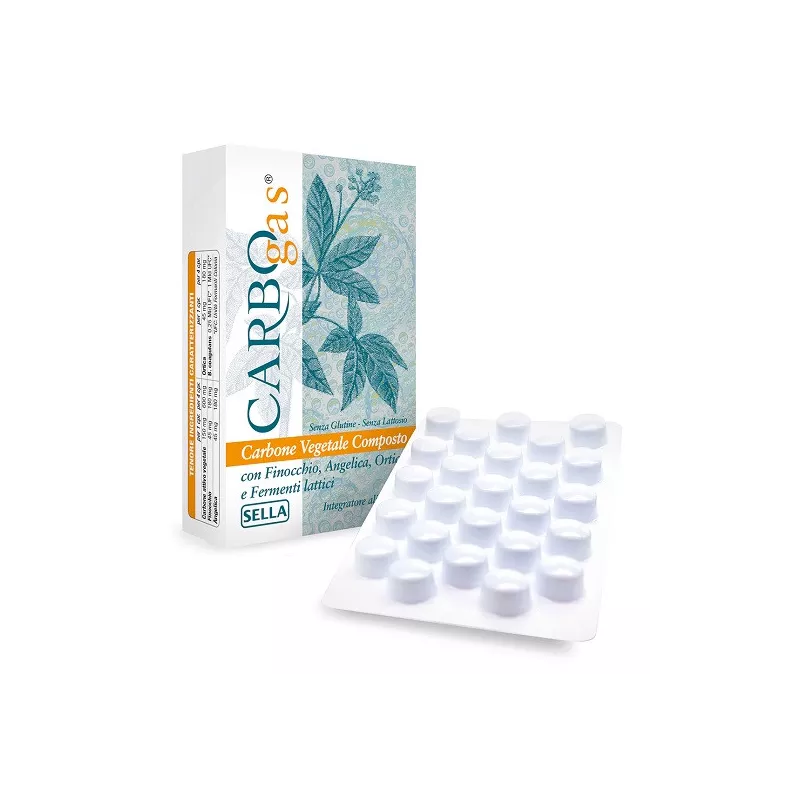 Ingredienti Agente di carica: E460 (i); carbone attivo vegetale; agenti antiagglomeranti: E471, E 463, E551, E470b; finocchio (Foeniculum vulgare Mill) frutti e.s. standardizzato 0,05% olio essenziale, angelica (Angelica archangelica L.) radice e.s. D/E* 4:1, ortica (Urtica dioica L.) foglie polvere, Bacillus coagulans (IS-2).