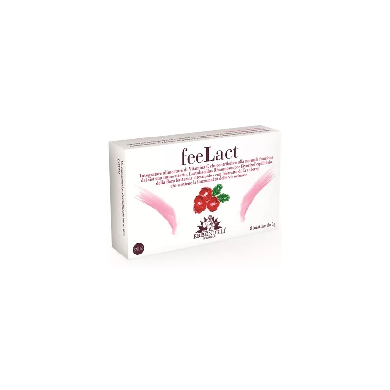 Integratore alimentare di Vitamina C che contribuisce alla normale funzione del sistema immunitario, Lactobacillus Rhamnosus per favorire l'equilibrio della flora batterica intestinale e con l'estratto di Cranberry che sostiene la funzionalità delle vie urinarie.