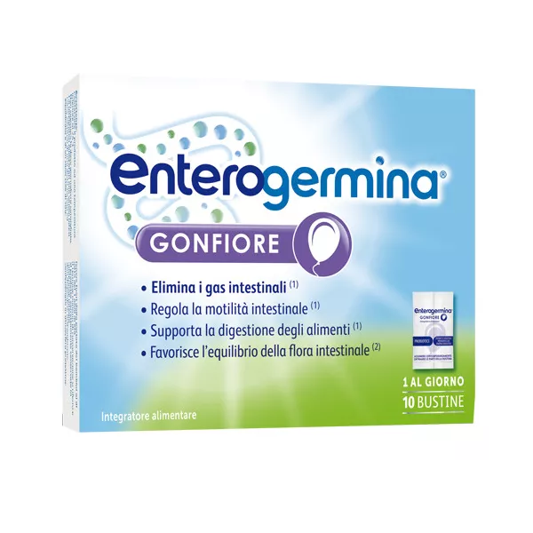 - azione rapida: estratti vegetali di menta e coriandolo, 100% di origine naturale, favoriscono l’eliminazione dei gas e la regolare motilità gastrointestinale, supportando così la digestione degli alimenti. Inoltre, Enterogermina Gonfiore è arricchita con enzimi digestivi;