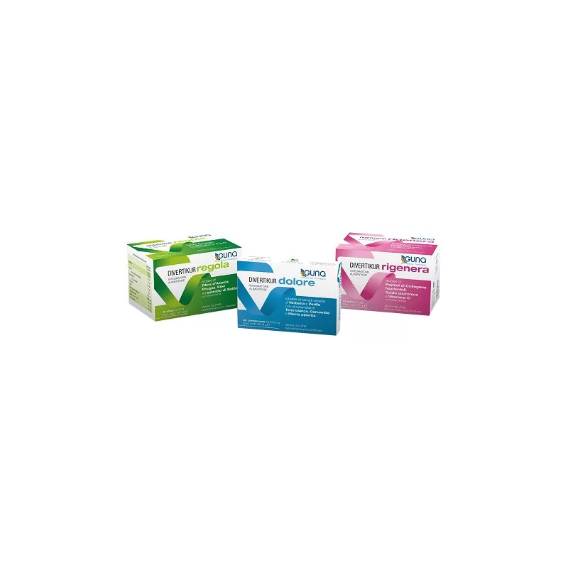 Divertikur regola: integratore alimentare a base di fibra d'acacia, prugna, kiwi ed estratto di boldo. Prugna e boldo favoriscono la regolarità del transito intestinale. Il kiwi ha un'azione di sostegno e ricostituente.