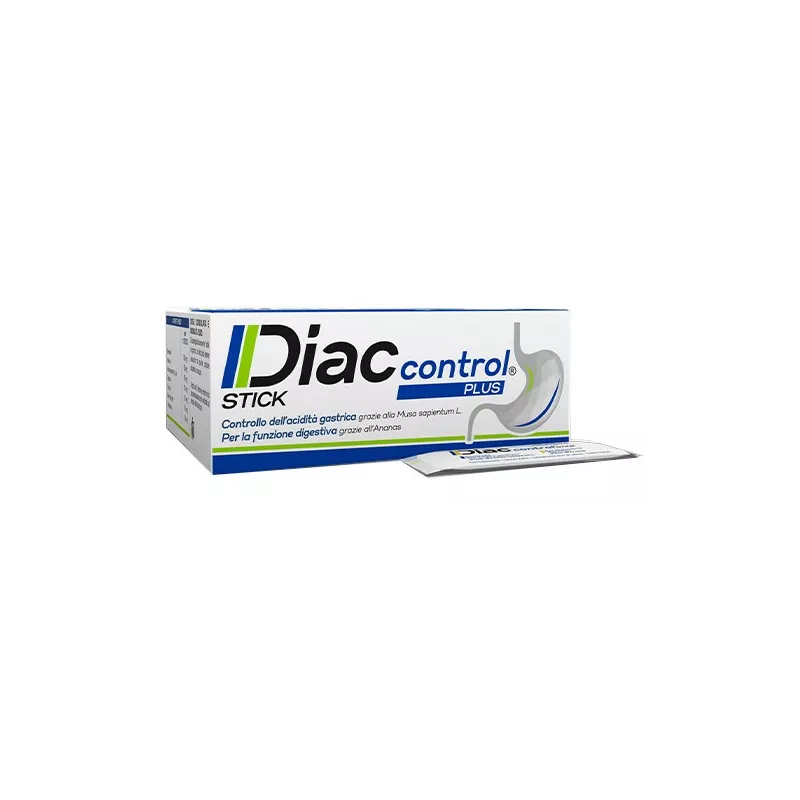Descrizione Complemento alimentare a base di bromelina, altea, Musa sapientum L., papaina, carvi, kiwi e ananas. DIAC CONTROL PLUS STICK, grazie alla Musa sapientum L., contribuisce al controllo dell'acidità gastrica. DIAC CONTROL PLUS STICK, grazie all’ananas, contribuisce alla funzione digestiva.