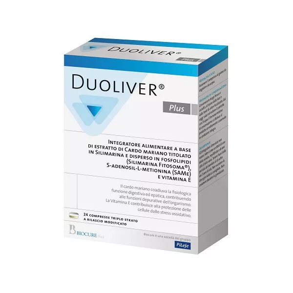 Descrizione Integratore alimentare a base di estratto di cardo mariano titolato in silimarina e disperso in fosfolipidi (silimarina fitosoma), S-adenosil-L-metionina (same) e vitamina E.